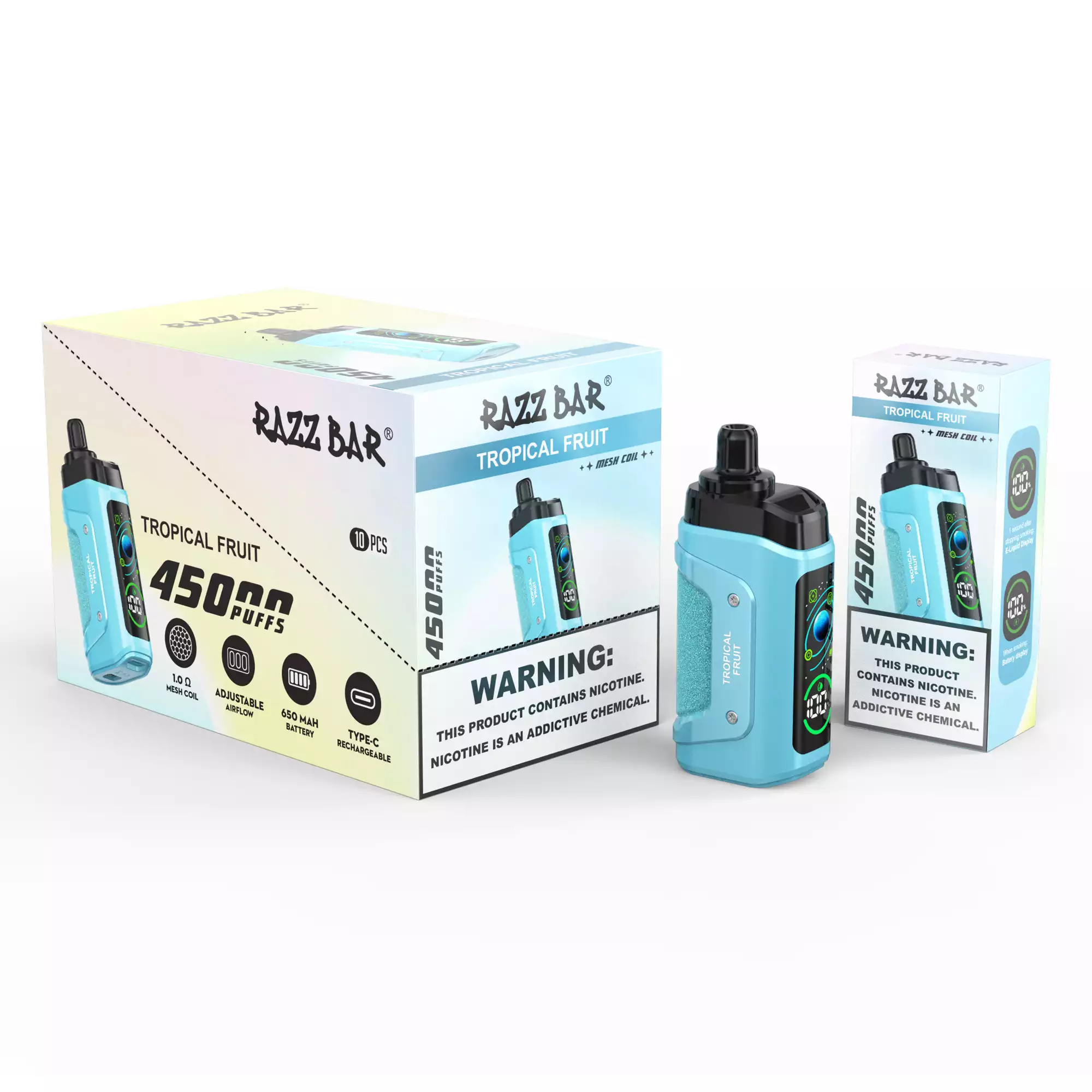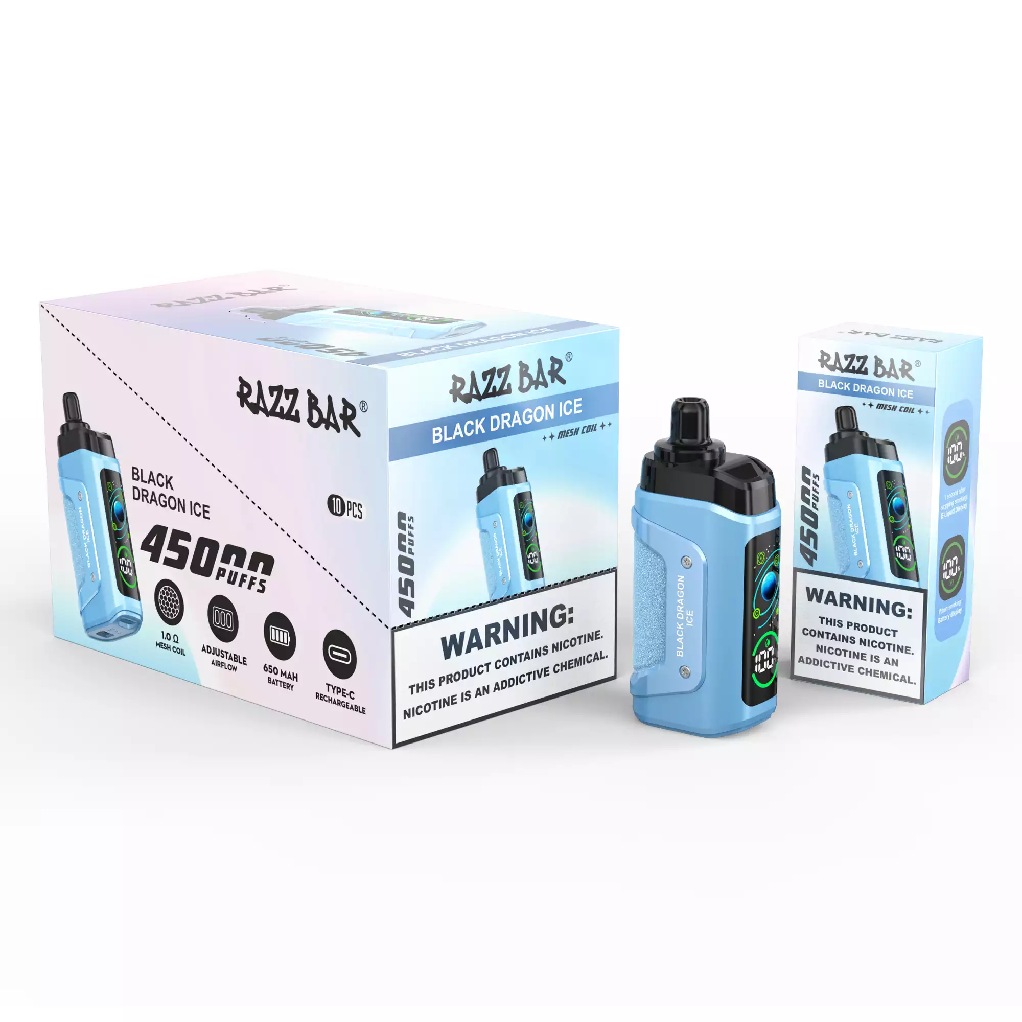 - Oplaadbare krachtbron: Uitgerust met een 650mAh oplaadbare batterij en Type-C oplaadpoort, elimineert de RAZZ BAR de frustratie van lege batterijen tijdens het gebruik. Steek hem gewoon in en hij is klaar om een soepele, consistente damp te leveren.