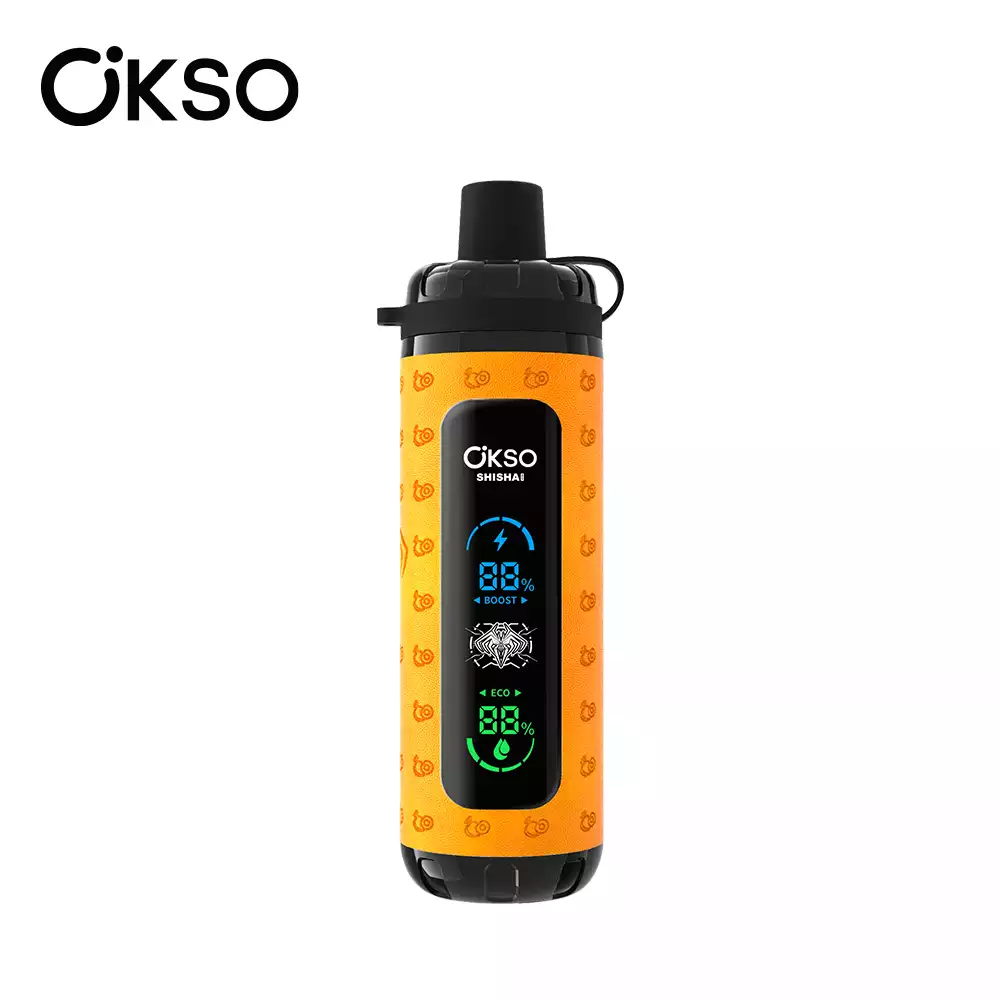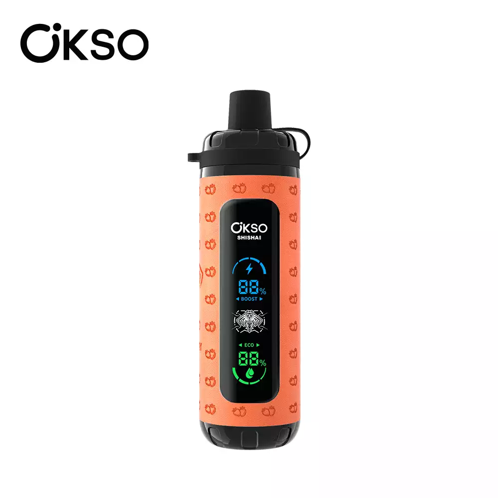 The OKso Shisha Max 40K is a high-performance rechargeable disposable vape boasting 40,000 puffs, 36ml capacity, an 800mAh Type-C battery, mesh coil technology, an intuitive LED display, adjustable power/airflow, child-resistant lock, 10 premium taste blends, and 0%/2%/3%/5% vape strengths – engineered for longevity, versatility, and an exceptional vaping experience.